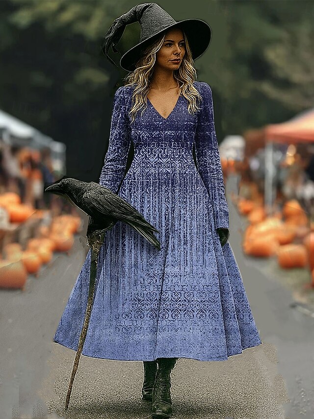 Why Choose Women's Midi Dress A Line Dress Vacation Casual Daily Holiday Date Regular Fit Ombre Graphic Long Sleeve V Neck Blue Purple Orange Green Fall Winter?