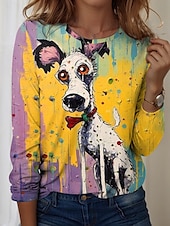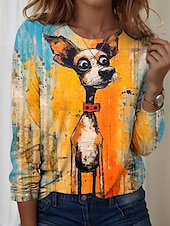Why Choose Women's T shirt Crew Neck Long Sleeve Tunic Graphic Animal Vintage present-day Modern Regular Tops Daily Print Yellow Blue Dusty Blue Orange Fall?