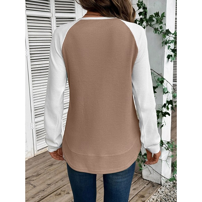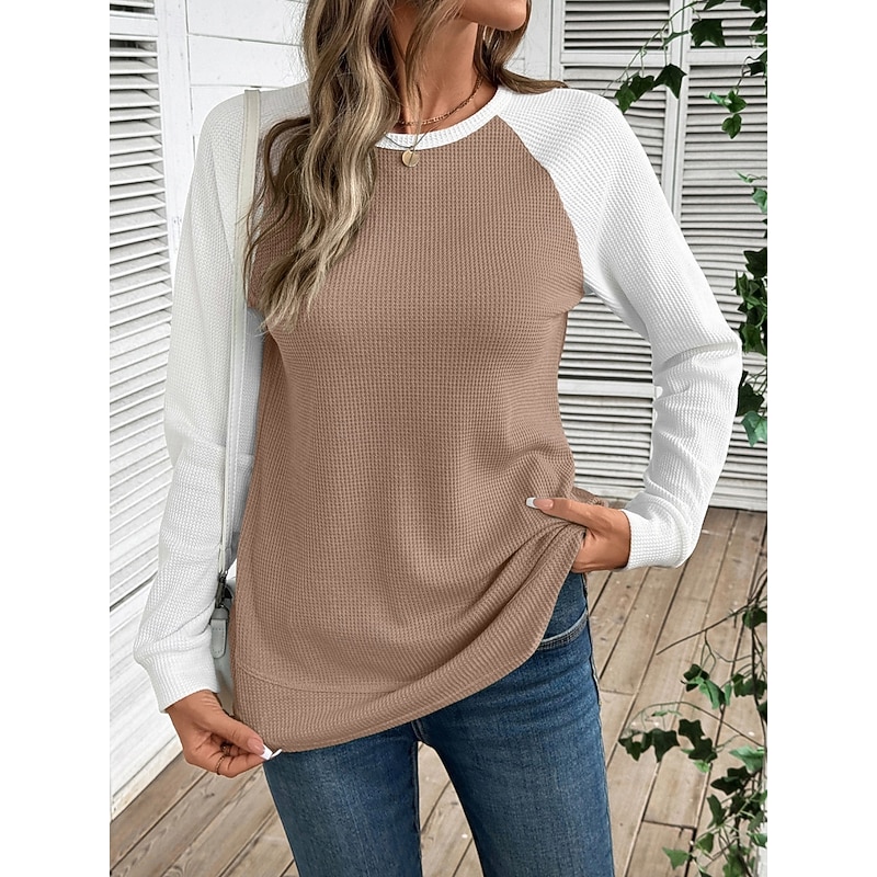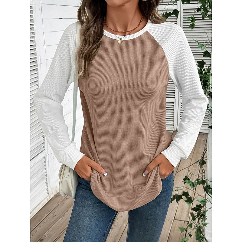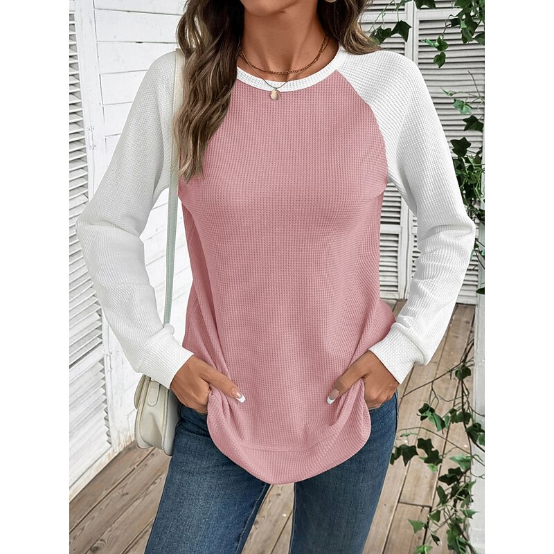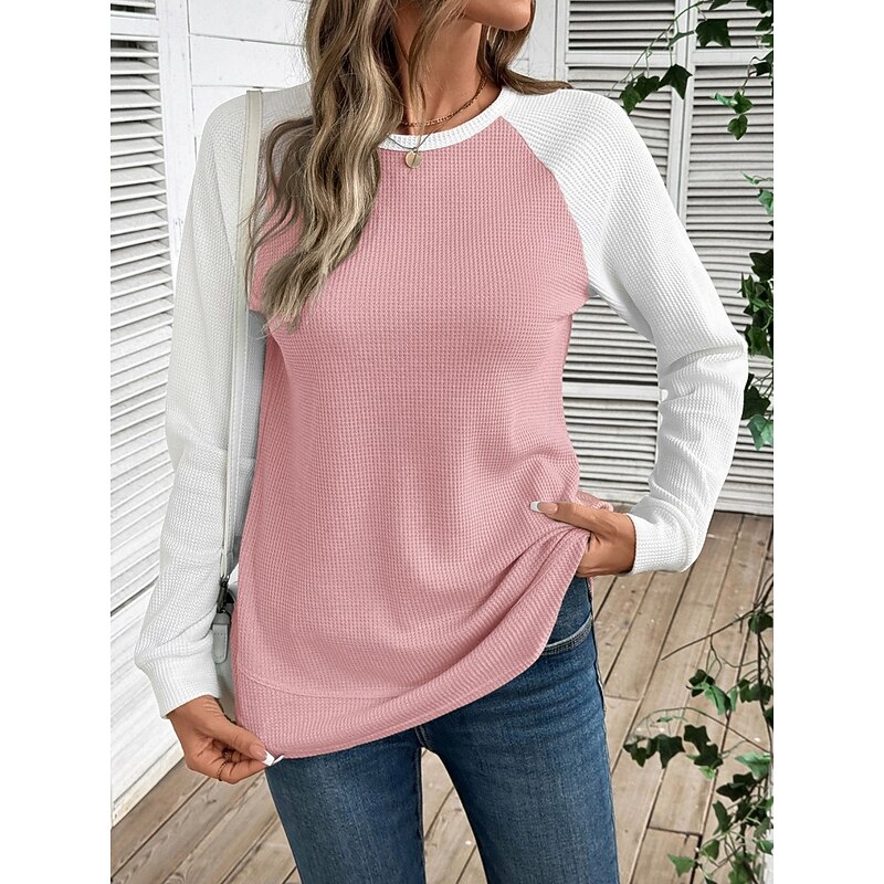 More information about Women's T Shirt Color Block Fashion sophisticated retro Long Sleeve Round Neck Regular Tops Daily Weekend Pink Sky Blue Khaki Gray Spring Fall Winter