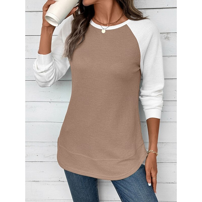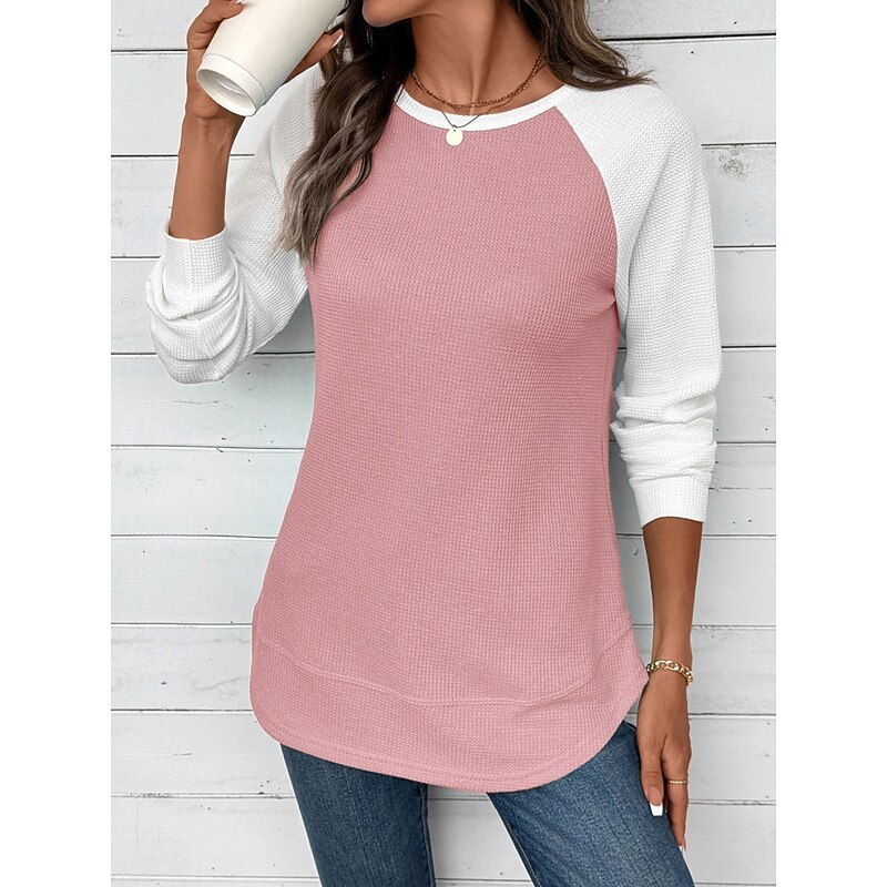 sizzling ! Women's T Shirt Color Block Fashion trendy iconic Long Sleeve Round Neck Regular Tops Daily Weekend Pink Sky Blue Khaki Gray Spring Fall Winter