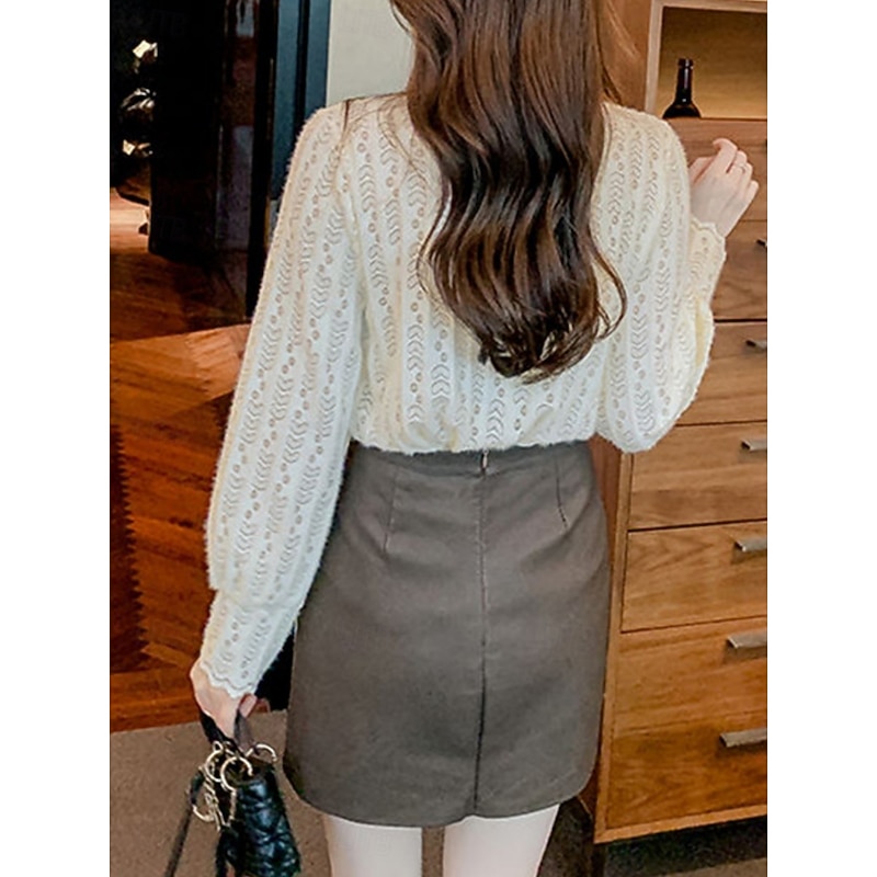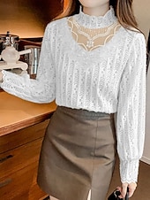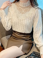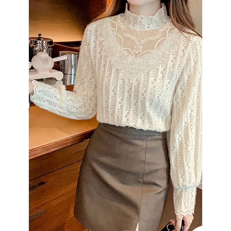Why Choose Women's Blouse Solid Color present-day Casual Long Sleeve Turtleneck Regular Tops Daily Lace Patchwork White Apricot Spring Fall Winter?