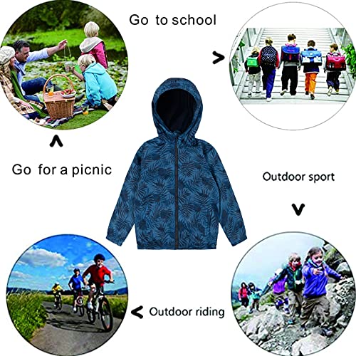 SUNDAY ROSE Boys Rain Jacket Lightweight Breathable Raincoat Waterproof Hooded Windbreaker For Kids Blue Black Size 10 4