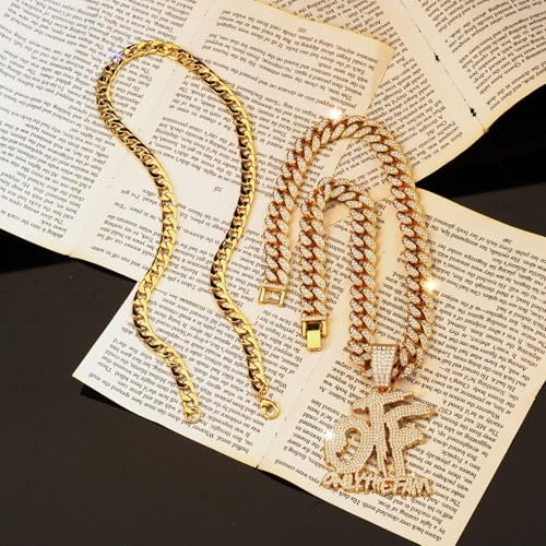 • DESIGN: Trendy hip hop style OTF letter pendant necklace featuring a Cuban chain design with diamond accents for a luxurious look