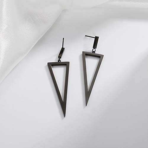 Material: Stainless SteelMetal type: Stainless SteelBack Finding: Push BackEarring design: DangleGem type: No GemstoneItem type name: Dangle EarringsSimple Earring: The statement black earrings are made of stainless steel. size: 2 3/8 in Length. That will work great for the office, evening, or almost any occasionUnique Design: Geometric triangle drop earrings, make you charmer and elegant, lovely, and attractiveComfortable: These black earrings are hypoallergenic and comfortable to wear. Lightweight, easy to put on and take offGreat for Women: A surprise for your Mom, Grandma, lover, wife, daughter, granddaughter, female friends, or just yourself on the holiday, anniversary, birthday, or celebrationQuality: If there are any quality issues with the earrings, please let us know and we will be happy to serve you Perfect for everyday use. first-class materials and excellent craftsmanship ensure long-lasting durability.