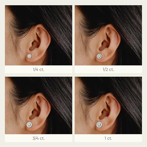 Material: Sterling SilverMetal type: Sterling SilverBack Finding: Push BackEarring design: StudGem type: DiamondTIMELESS SPARKLE: A radiant halo of 12 lab-grown diamonds encircles a brilliant solitaire, forming a total weight of 1 carat. Set in 14KT gold plated sterling silver, these round diamonds in SI1 clarity and F color bring together dazzling brilliance and graceful sophistication.ELEGANT ENDURANCE: Designed for the modern woman who loves a little extra sparkle, these halo lab-grown diamond studs bring the perfect touch of bling. Stylish, durable, and responsibly crafted, they fuse contemporary glamour with conscious design.STERLING SILVER SOPHISTICATION: Crafted in high-quality 925 sterling silver and finished with luxurious 14KT gold plating, these earrings strike the perfect balance between refined elegance and lasting durability, ensuring a radiant shine that enduresCOMFORTABLE & SECURE FIT: Length: 9.1mm; Width: 5.2mm; Height: 9.1mm. Lightweight, sleek and comfortable ear piercing earrings that you can wear with confidence through the day and while sleeping through the night. Push back design ensures a secure and seamless fit that keeps the earrings in one placeHYPOALLERGENIC: Designed with sensitive skin in mind, these hypoallergenic diamond studs are crafted to be irritation-free perfect for effortless, everyday eleganceA MEANINGFUL GIFT: Arriving in a exquisite jewelry gift box, this fine small studs set is an ideal gift for women for birthdays, anniversaries, or any special occasion, symbolizing grace, sophistication, and enduring love Perfect for everyday use. premium materials and excellent craftsmanship ensure long-lasting durability.