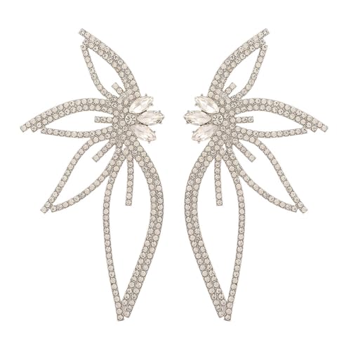 sizzling ! Missgrace Silver Stud Butterfly Earrings, 9.4cm, Rhinestone