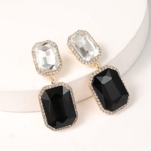 Vintage Rhinestone Statement Earrings Fancy Big Crystal Rectangle Drop Dangle Earrings Evening Prom Pageant Jewelry Earrings for Women 3