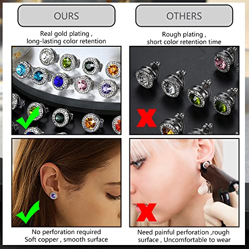 • CLIP ON EARRINGS SET: One set contains 12pairs birthstone clip earrings of different colors. Different colors represent different months. You can wear ear clips of corresponding colors in different months to keep fresh every day, trendy and versatile, which can be used as your daily jewelry or as gifts for your lovers.