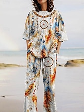 At www.nosterstudio.co.uk, we believe in providing our customers with only the best products. This Women's Bohemia Vacation Pants Sets 3/4 Length Sleeve Crew Neck Graphic Print Vacation Daily Holiday Khaki Summer Regular Fit is designed with attention to detail and high quality craftsmanship that you can see and feel. Whether you're looking for functionality, style, or both, this product delivers exceptional value.