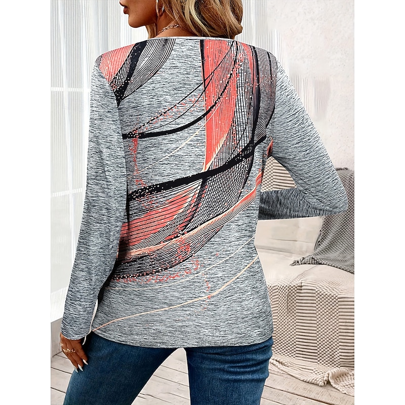 Women's T Shirt Graphic Abstract Vintage Stylish Classic Long Sleeve Crew Neck Round Neck Regular Tops Daily Print Pink Gray Light Blue Spring Fall Winter 2