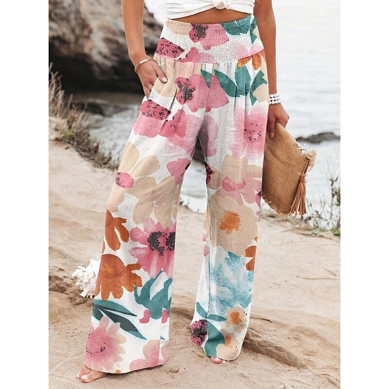 Why Choose Women's Cotton Linen Pants Wide Leg Chinos Vacation Fashion Casual Full Length High Waist Floral Pocket Elastic Waistband Print Comfy tender cushy Micro-elastic Outdoor Vacation Street Black Pink?
