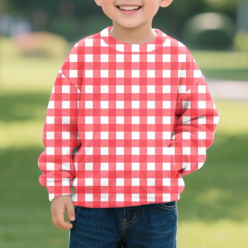 Girls Crewneck Sweatshirts Fashion Checkered Casual Hoodies Long Sleeve Oversized Pullovers Winter Preppy Clothes