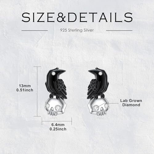 • 💎【Service Guarantee】90 day hassle on the house Return and Refund. your satisfaction is our priority, if you have any questions with this 925 sterling silver diamond skull stud earrings with raven for women, please feel free to contact us, we will reply within 24 hours.