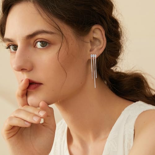 More information about HZMAN 3Pair Clip on Earrings for Women Non Pierced Silver Long Tassel/Teardrop Crystal Cubic Zirconia Dangle Drop Earring Party Wedding Jewelry Gift
