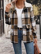 More information about Women's Winter Coat Outdoor Street Daily Wear Fall Winter Regular Coat Regular Fit Thermal thermal Breathable sophisticated Casual Jacket Long Sleeve Stripes and Plaid with Pockets Fur Collar Khaki
