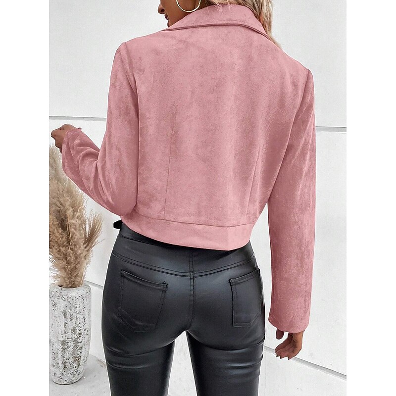 More information about Women's Casual Jacket plush Breathable Pocket Elegant Casual Plain Vacation Street Casual Daily Wear Open Front Short Turndown Regular Fit Long Sleeve Outerwear Pink Red Green Spring Fall