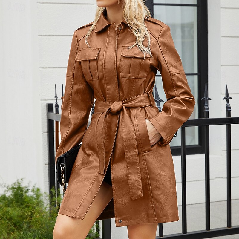 sizzling ! Women's Coat Windproof relaxing Pocket Full Zip Fashion Street Style Plain Outdoor Casual Daily Long Turndown Regular Fit Long Sleeve Outerwear Black Burgundy Camel Fall Winter