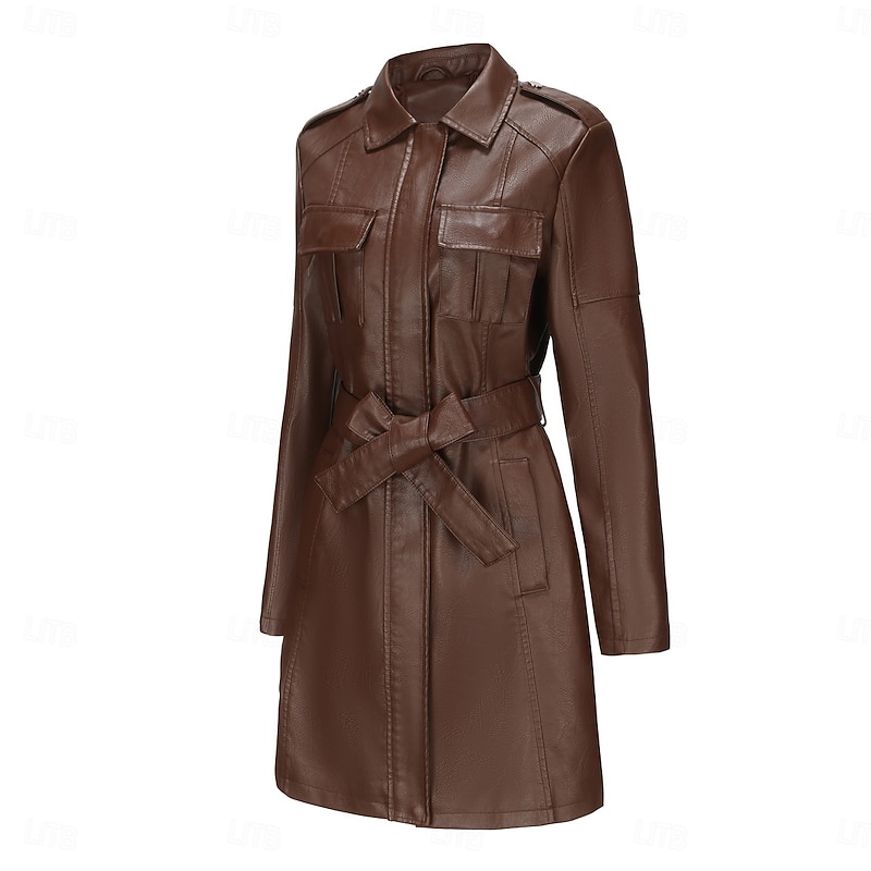 Women's Coat Windproof Comfortable Pocket Full Zip Fashion Street Style Plain Outdoor Casual Daily Long Turndown Regular Fit Long Sleeve Outerwear Black Burgundy Camel Fall Winter 12