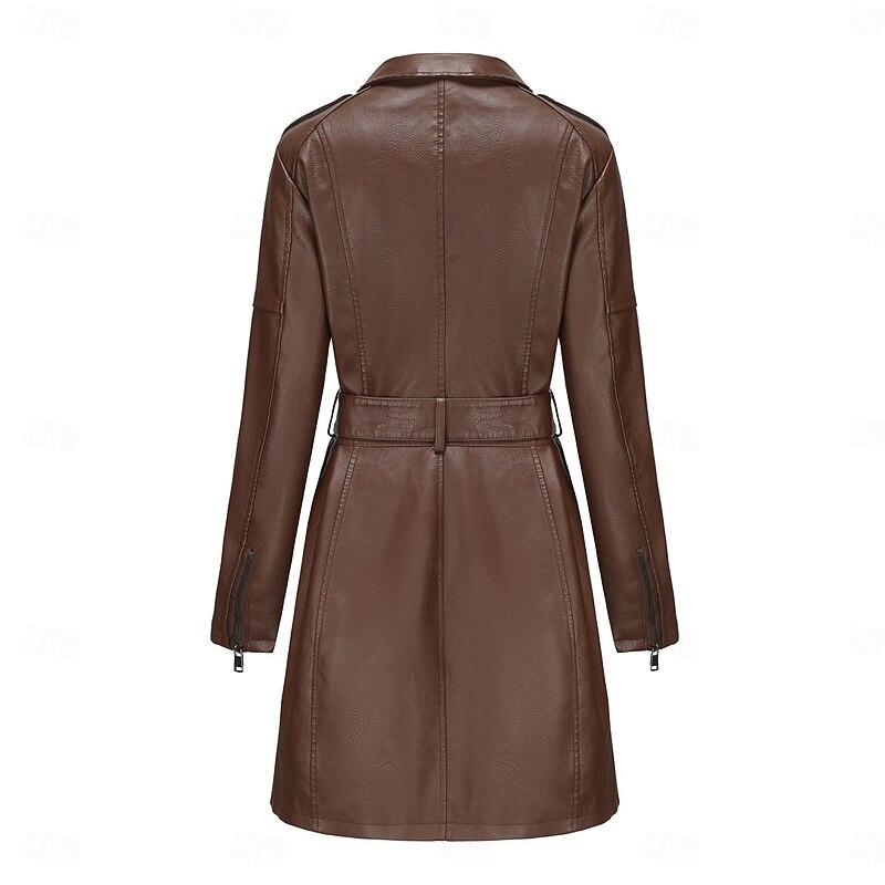 Women's Coat Windproof Comfortable Pocket Full Zip Fashion Street Style Plain Outdoor Casual Daily Long Turndown Regular Fit Long Sleeve Outerwear Black Burgundy Camel Fall Winter 4
