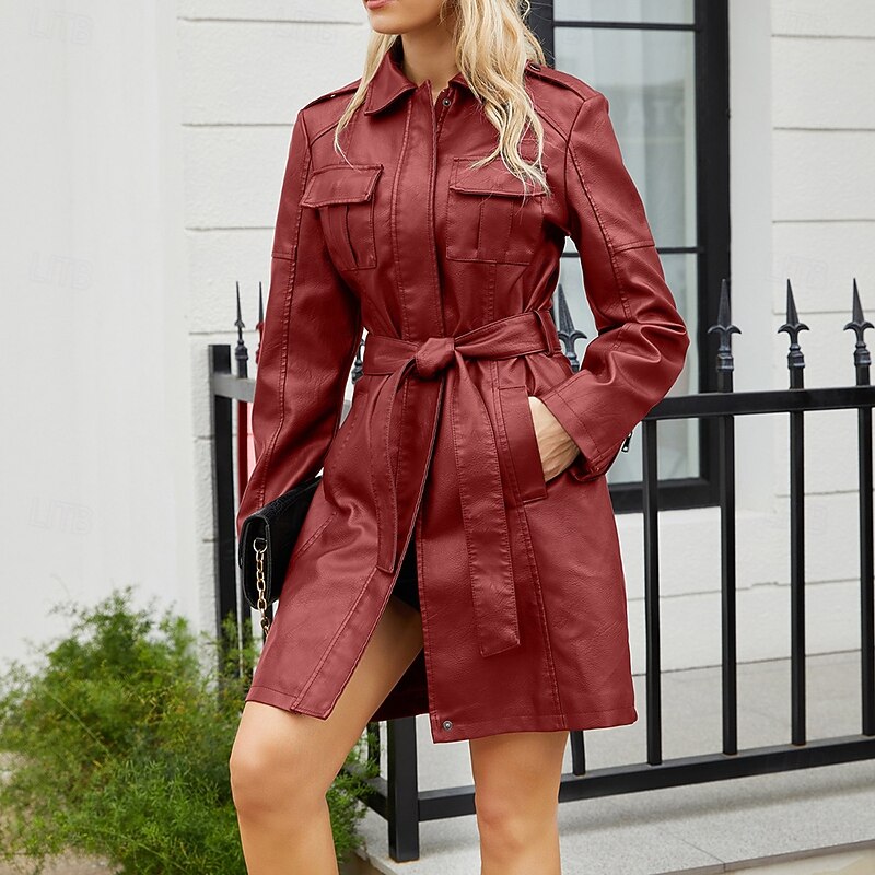Women's Coat Windproof Comfortable Pocket Full Zip Fashion Street Style Plain Outdoor Casual Daily Long Turndown Regular Fit Long Sleeve Outerwear Black Burgundy Camel Fall Winter 25