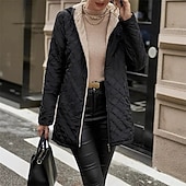 More information about Women's Puffer Jacket Quilted Jacket Casual Jacket cozy Breathable Zipper Pocket Casual Plain Vacation Street Casual Daily Wear Zipper Long Hooded Regular Fit Long Sleeve Outerwear Black