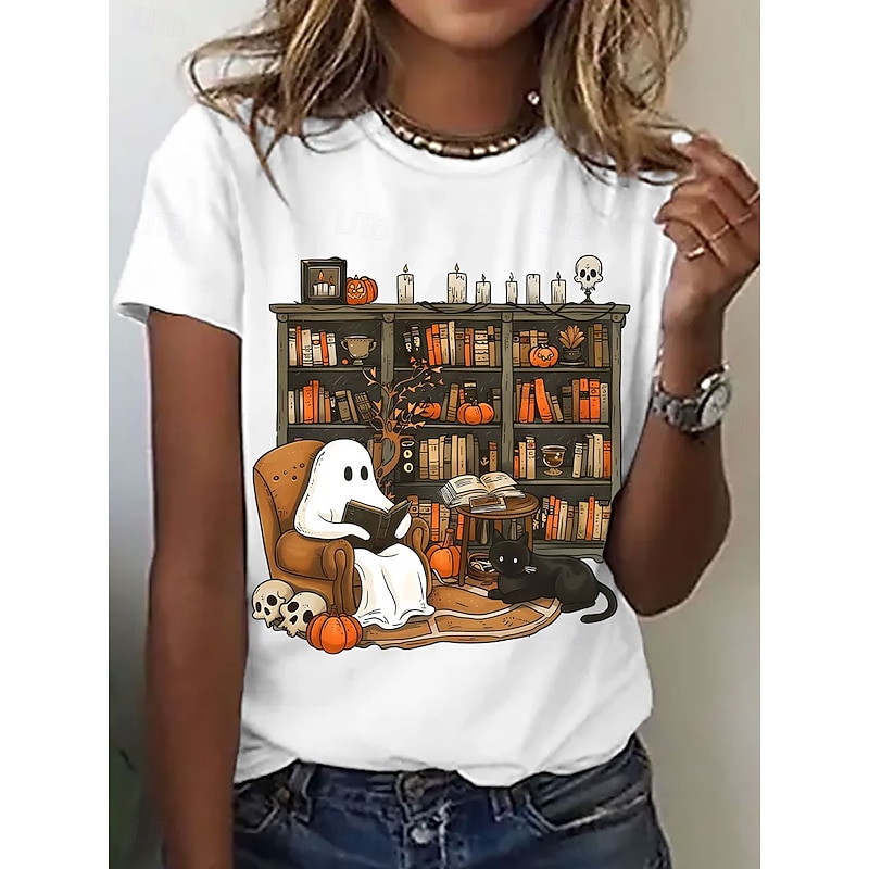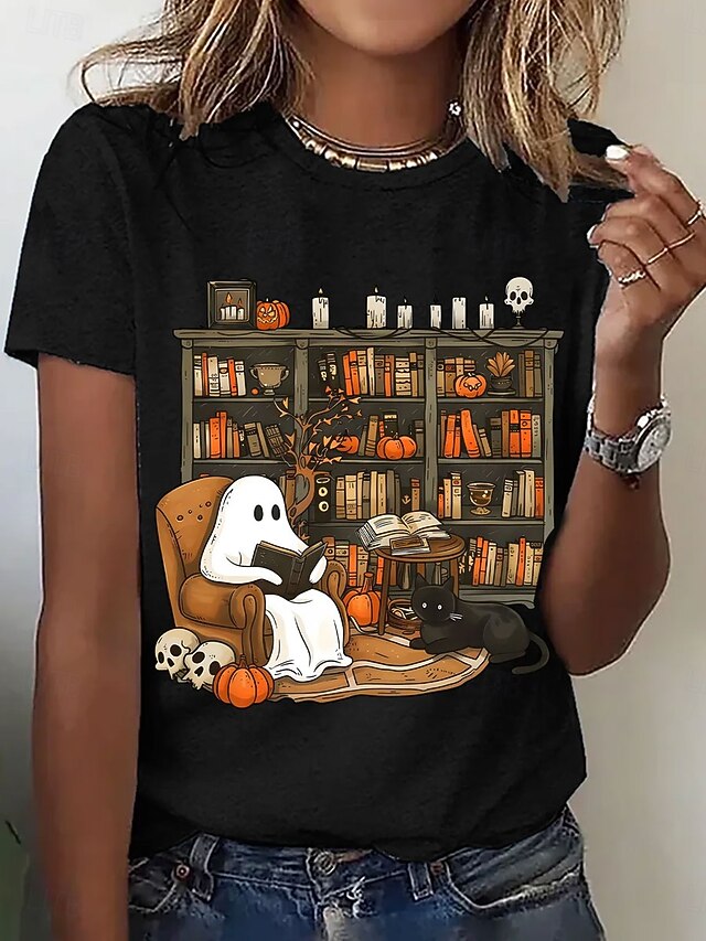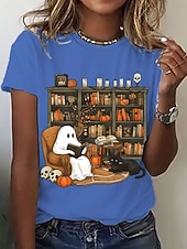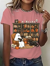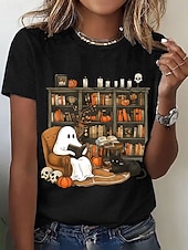 Why Choose Halloween Women's T shirt Ghost Graphic Letter Vintage present-day Classic Short Sleeve Crew Neck Regular Tops Daily Going out Weekend Print Black White Pink Blue Summer Fall?