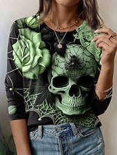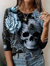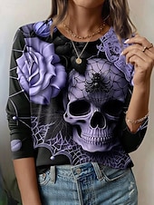 This Halloween Women's T Shirt Skulls Graphic Fashion Casual Long Sleeve Crew Neck Round Neck Regular Tops Daily Weekend Print Pink Blue Purple Green Gray Summer Spring Fall combines elegant design with practical functionality. Every detail has been carefully considered to ensure you get the ultimate possible experience. The top-grade construction means this product will serve you well for years to come.