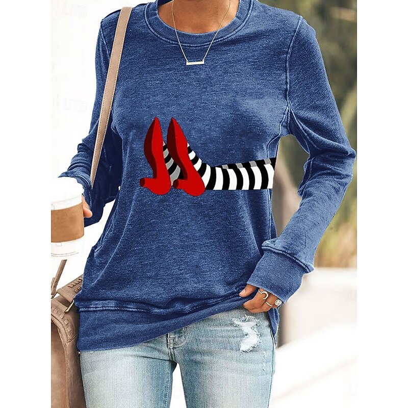 Why Choose Halloween Women's Pullover Sweatshirt Witch Graphic Casual Long Sleeve Crew Neck Round Neck Regular Tops Street Casual Holiday Print Black Red Blue Green Gray Spring Fall Winter?