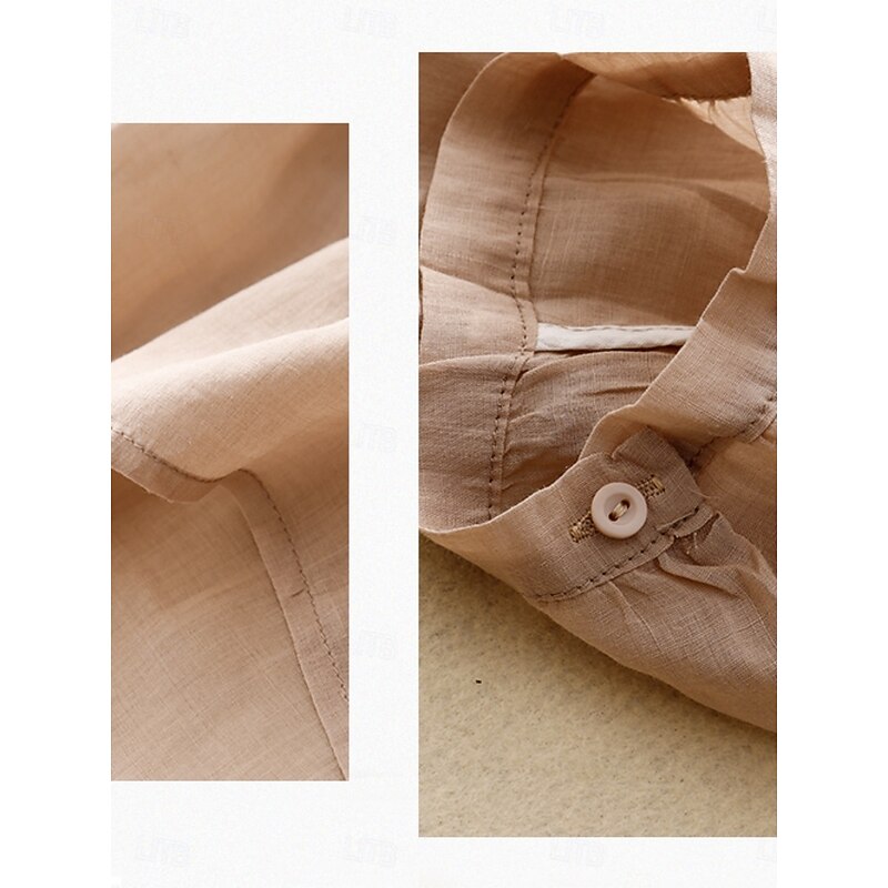Women's Cotton Linen Shirts Solid Color Stylish Basic Casual 3/4 Length Sleeve V Neck Regular Tops Daily Embroidered Light Green Pink Purple Khaki Summer 11