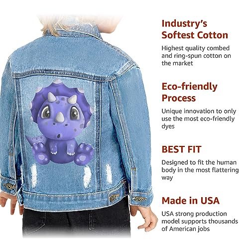 Fabric type: 95% Cotton and 5% SpandexCare instructions: Machine WashOrigin: Made in the USALittle Dino Toddler Denim Jacket is made of premium quality denim that flexes and moves with you, made with our famous riveted strength. Super stretch denim lasts from day to night and its snug fit doesn't lose its shape. Toddler Denim Jacket has basic style but trendy and fashionable, lightweight material offers a relaxing feeling.Dinosaur Print Present is suitable for all occasions, including birthday parties, Christmas, Halloween, and other holidays, school, home, indoor leisure, outdoor sports, etc.By purchasing our jacket, you also get quality and fashionable style. Combining comfort and elegance, Dino Fan Boy Present will be a great addition to any wardrobe. You will definitely not regret the purchase, because your child will be happy to wear such a trendy and at the same time outstanding for everyday use cloth.Actual product color may vary from the images shown. Every monitor or mobile display has a different capability to display colors, and every individual may see these colors differently. In addition, lighting conditions at the time the photo was taken can also affect an image's color.Designed and printed in California. Perfect for everyday use. first-class materials and excellent craftsmanship ensure long-lasting durability.