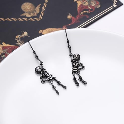 Black Skeleton Earring S925 Sterling Silver Halloween Spooky Gothic Skull Dangle Drop Earring for Women Jewelry 4