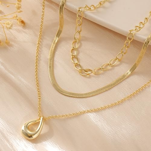 Layered Gold Necklaces for Women, 3Pcs Dainty 14k Gold/Silver Plated Herringbone Choker Set, Trendy Stack Simple Chain Layering Pendant Jewelry 3
