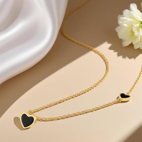 • rare Elegant Design: timeless heart necklaces for women feature 14K gold plating, enamel craft design, and a double black heart pendant. The heart element is a fashion symbol that will never go out of style. It’s something you can wear casually or dress up, and you can never go wrong.