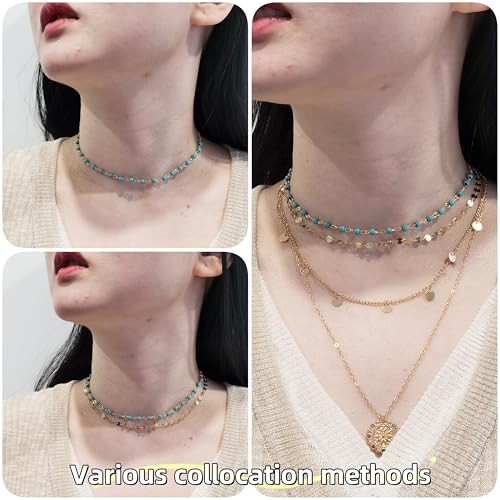 • bohemian jewelry for women : You will obtain 3 pcs Boho Necklaces contain of: minimalist Coins necklace and turquoise stone beads choker and glitter bohemia sequin necklace.Multi layering choker necklaces suitable for daily jewelry or any other occasions,let you look elegant, attractive and fashionable