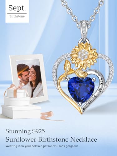 Birthstone Sunflower Necklace Birthday Gifts for Women,925 Sterling Silver You Are My Sunshine Pendant,Single/Double Birthstones Necklace Anniversary Jewelry Gifts for Wife Mom Grandma 5