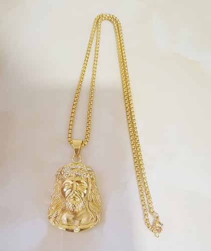 sizzling ! 18K Gold-plated Jesus Christ Necklace for Men Women | Jesus Christ Pendant with Chain | Hip Hop Necklace 24‘’