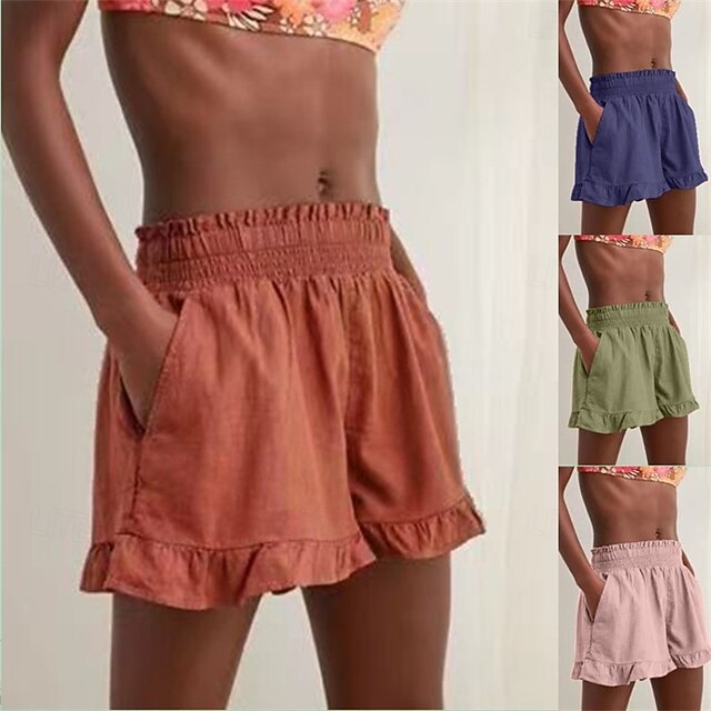 More information about Women's Shorts Beach Shorts Baggy Shorts Fashion Streetwear Comfort Short Mid Waist Plain Elastic Waist Comfy Outdoor cozy Street Daily Wear Going out Wine Black Pink Army Green Summer Regular