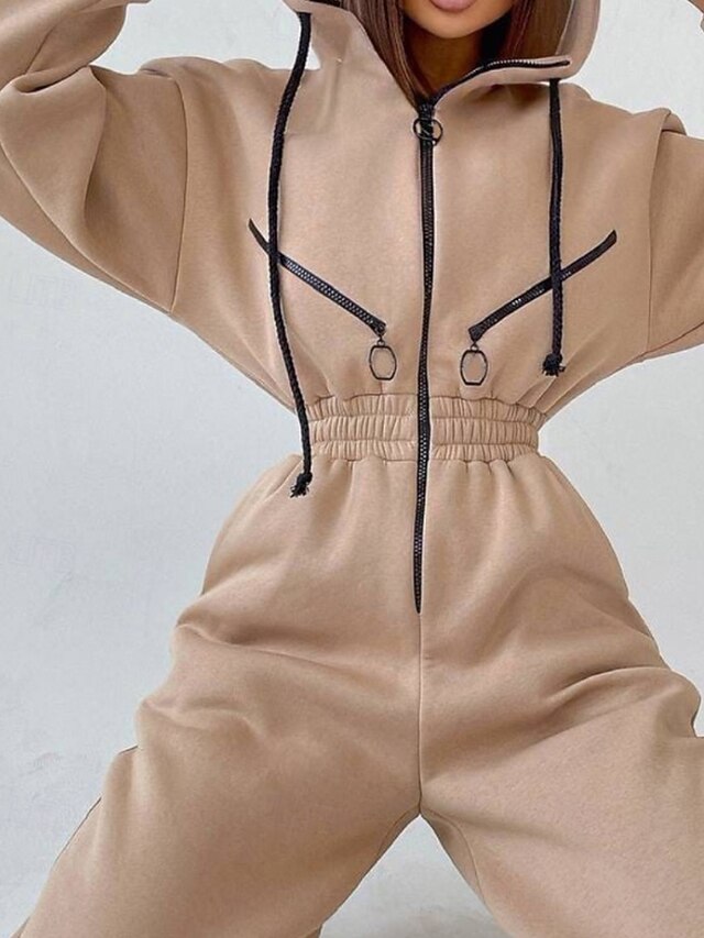 Women's Normal Jumpsuit Streetwear Color Block Long Sleeve Hooded Patchwork Zipper Street Daily Regular Fit White Pink Blue Fall 14