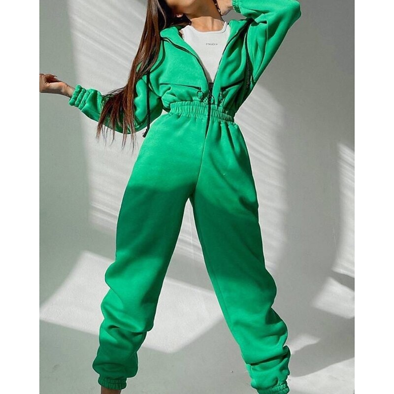 Women's Normal Jumpsuit Streetwear Color Block Long Sleeve Hooded Patchwork Zipper Street Daily Regular Fit White Pink Blue Fall 12