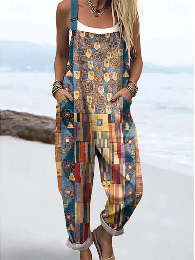 Why Choose Women's Overall Active Graphic Sleeveless Drawstring Patchwork Vacation Street Loose Fit Light Brown Blue Orange Summer?