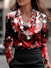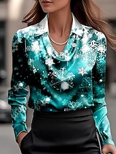 More information about Christmas Women's Shirt Ombre Graphic Snowflake Elegant Vintage Tropical Long Sleeve Cowl Neck Regular Tops Work Party Evening Wear Daily Ruched Draped Wine Army Green Navy Blue Fall Winter