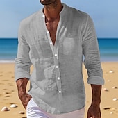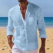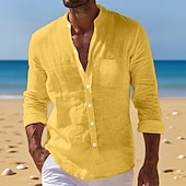 sizzling ! Men's Shirt Linen Shirt Summer Shirt Beach Wear Button Up Shirt Plain Vacation Daily White Yellow Navy Blue Blue Long Sleeve Band Collar Summer Fall Clothing Apparel Front Pocket