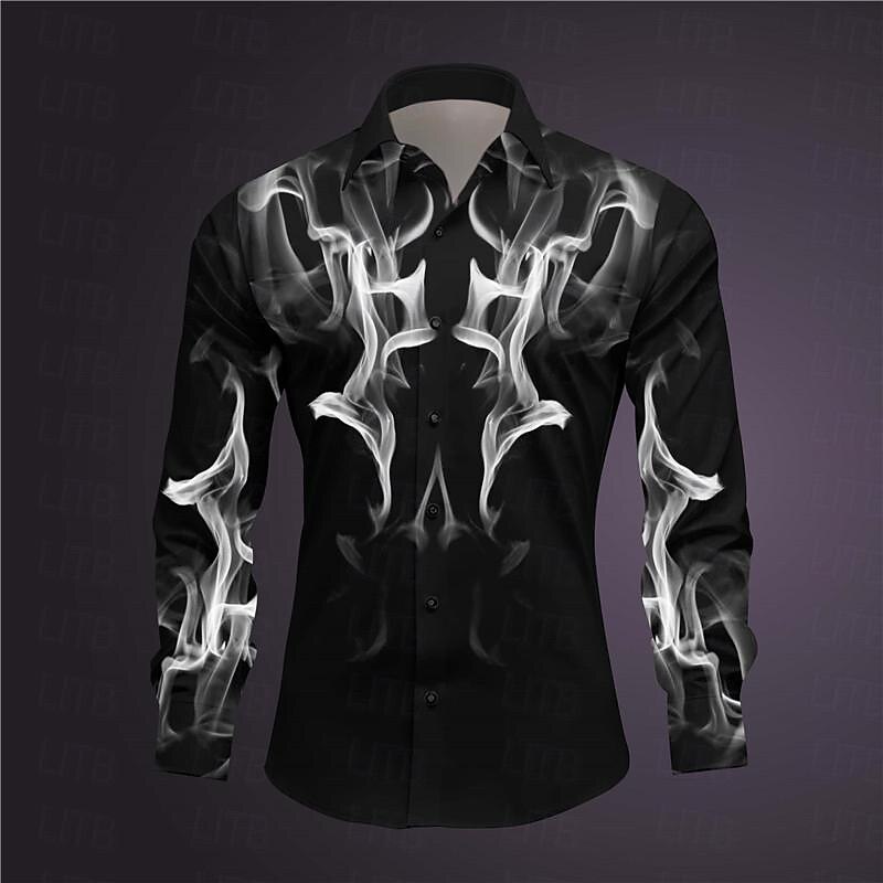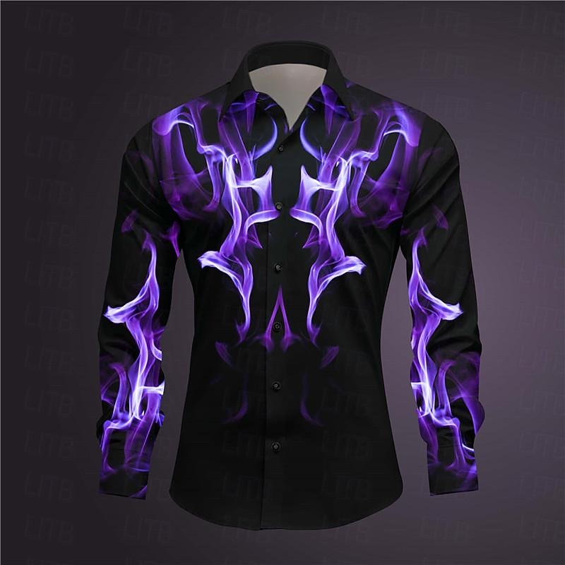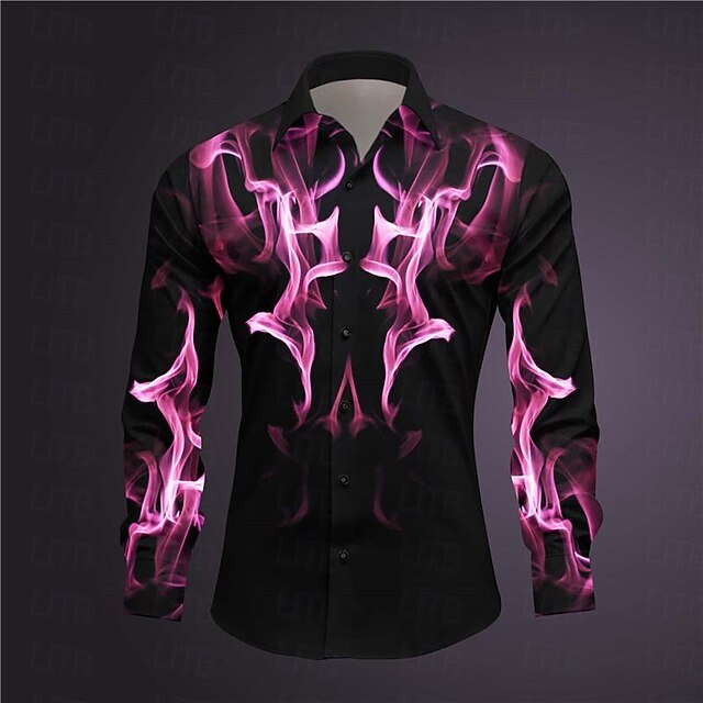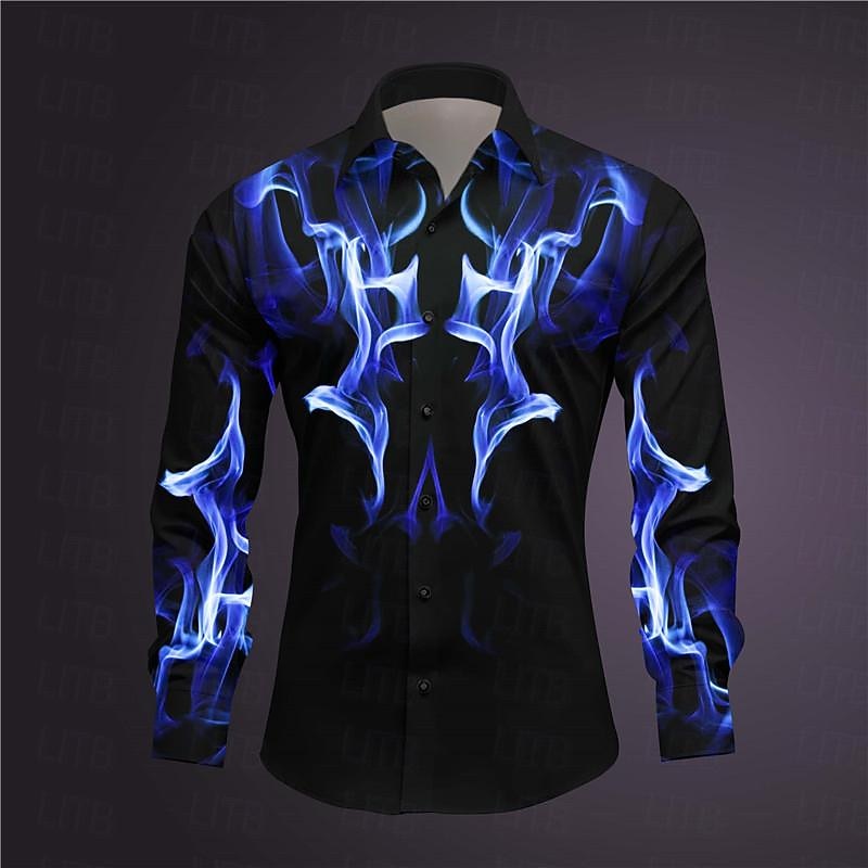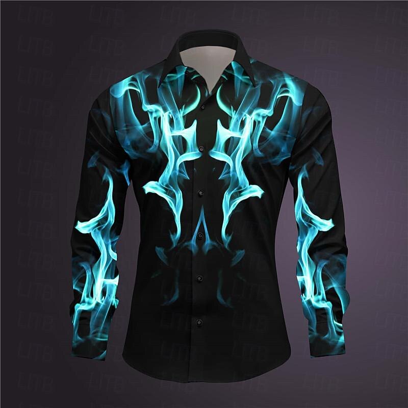 More information about Men's Geometric Pattern Fire Shirt Button Up Shirt Long Sleeve Abstract Subcultural Daily Wear Going out Spring Turndown Print Button-Down Dark Red Yellow Pink Royal Blue Blue