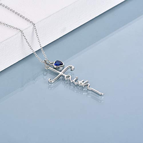 Faith Cross Necklace For Women Birthstone Sterling Silver with Simulated Birthstone Cross Jewelry Christian Gifts 5
