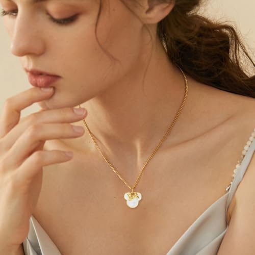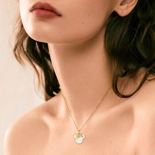 More information about S925 Sterling Silver Plated Gold Sweet Mouse Necklace With Bow White Dropper Cute Mouse Animal Exquisite Fashionable Necklace Anniversary Romantic Birthday Gift for Her Mom Daughter Women