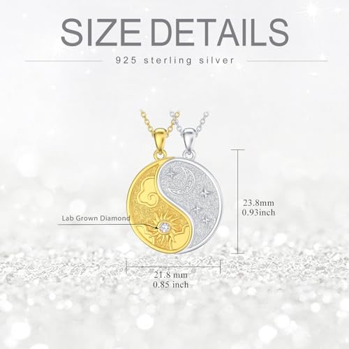 Diamond Sun and Moon Yin Yang Necklace for Couple supreme Friend 925 Sterling Silver Yin Yang Matching Necklace with Lab Grown Diamond Jewelry Gifts Couple Friendship BFF Necklace for 2
