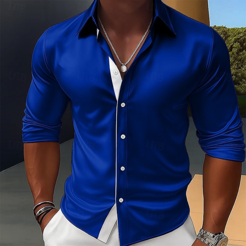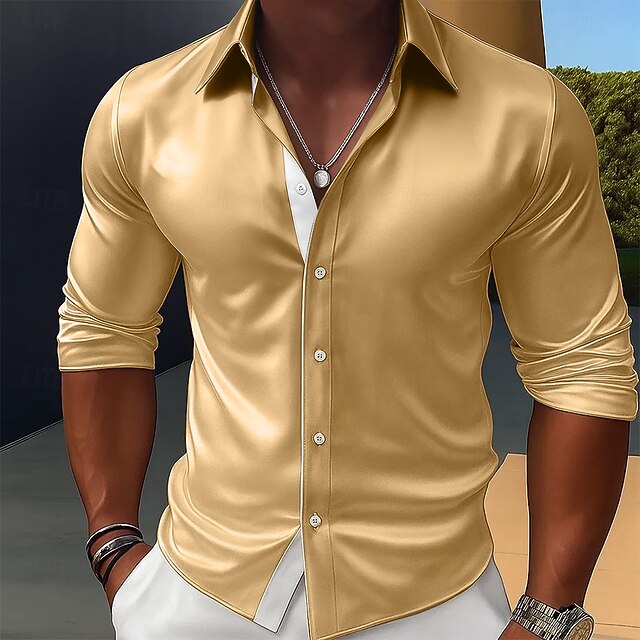 More information about Men's Shirt Satin Shirt Dress Shirt Casual Shirt Button Up Shirt Prom Shirt Plain Formal Wedding Black Red Royal Blue Gold Long Sleeve Lapel every Seasons Clothing Apparel Color Block