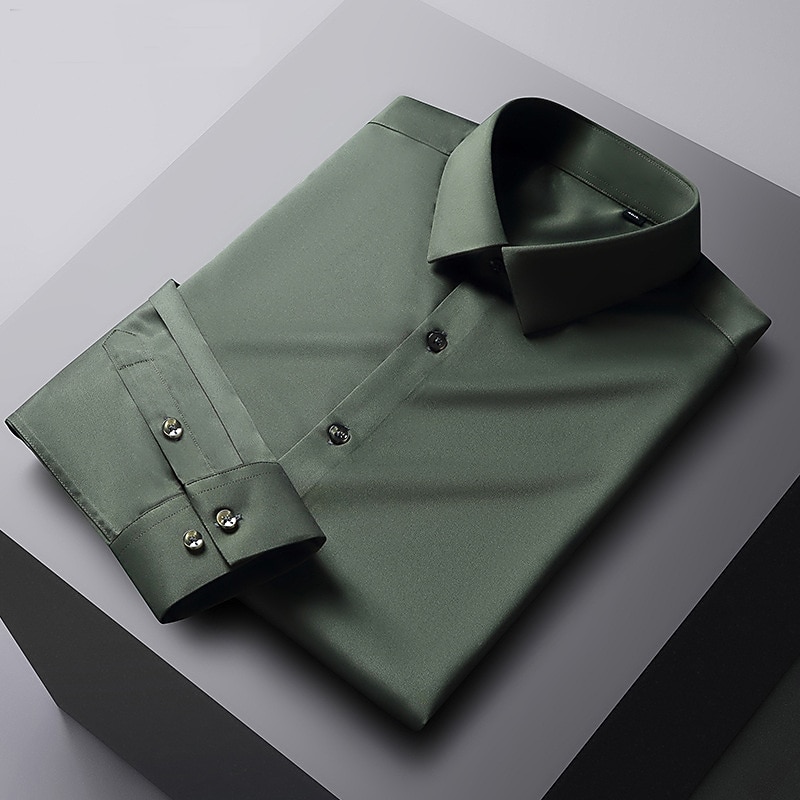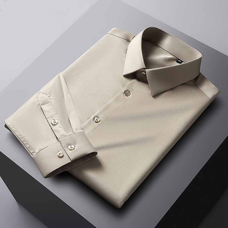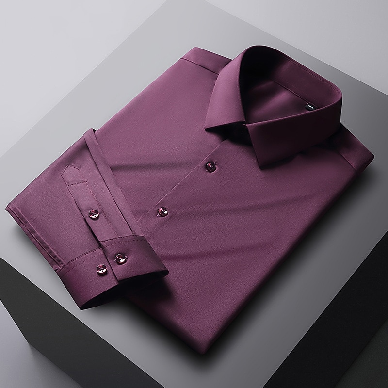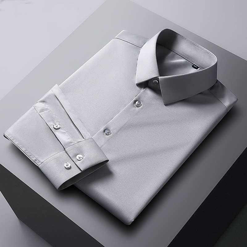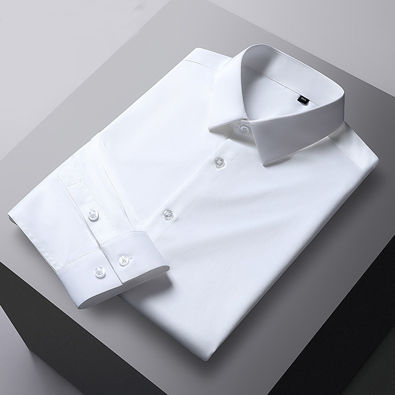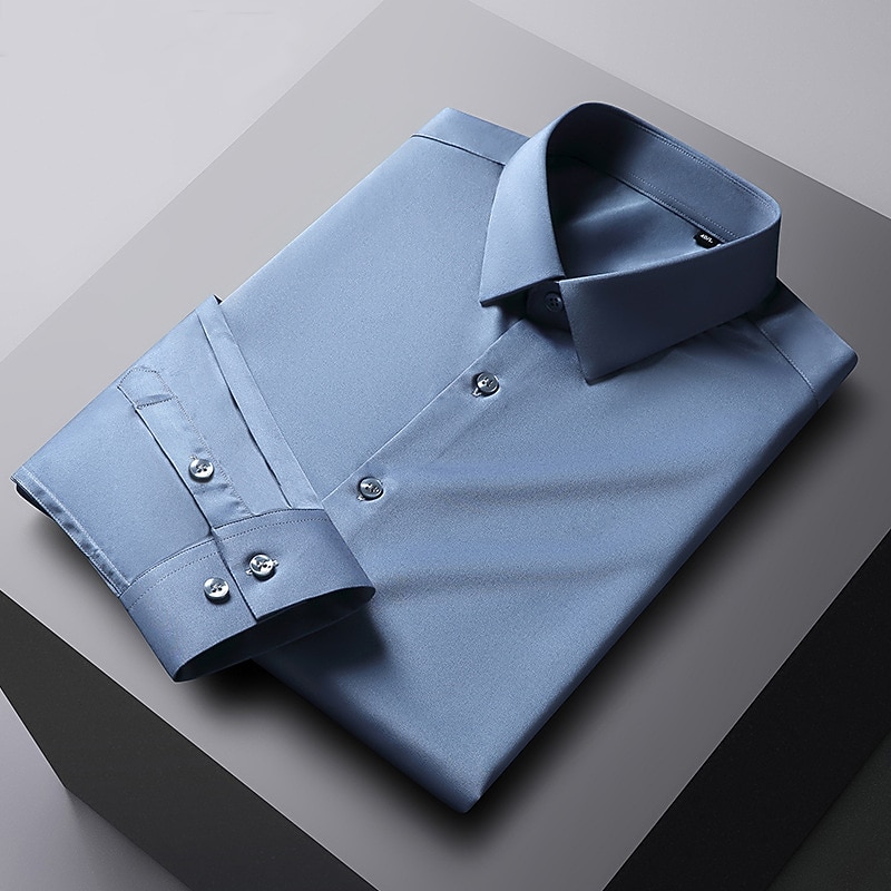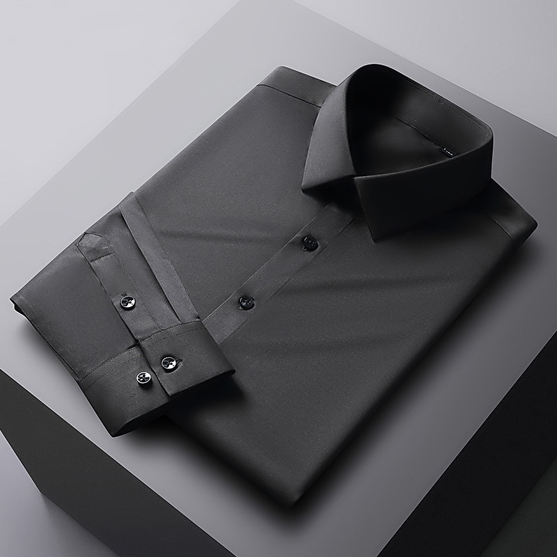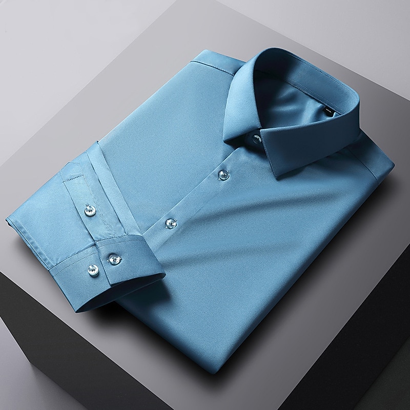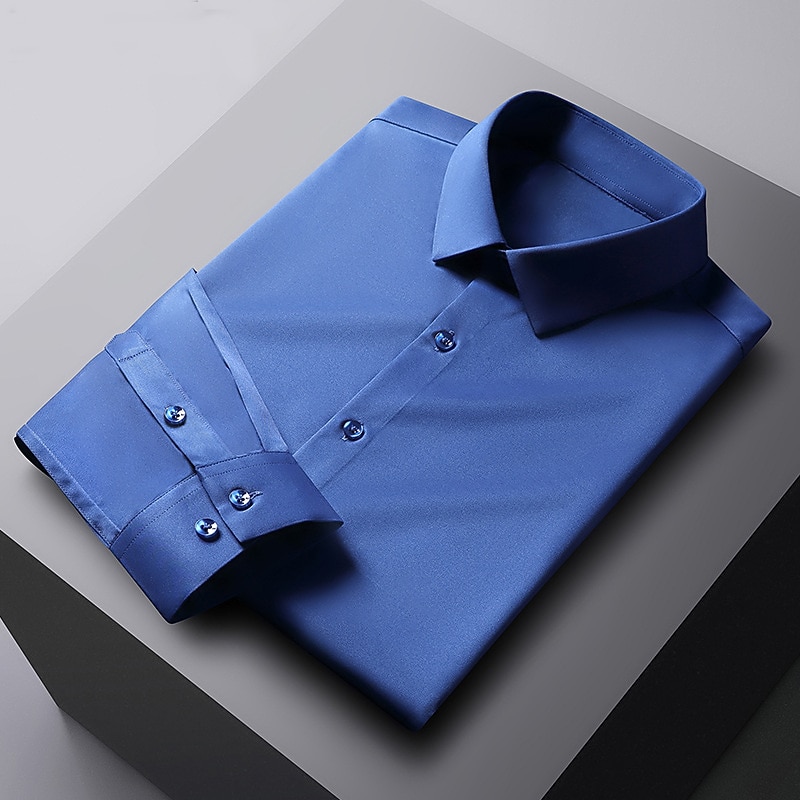 More information about Men's Dress Shirt Non Iron Shirt Solid / Plain Color Wedding Office & Career Light Blue Black White Dark Navy Long Sleeve Turndown Spring & Summer Clothing Apparel