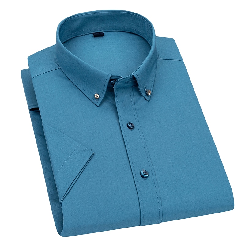 Men's Dress Shirt Button Down Shirt Wrinkle Resistant Collared Shirt Graphic Prints Wedding Work Black White Pink Navy Blue Short Sleeve Square Neck All Seasons Clothing Apparel 17