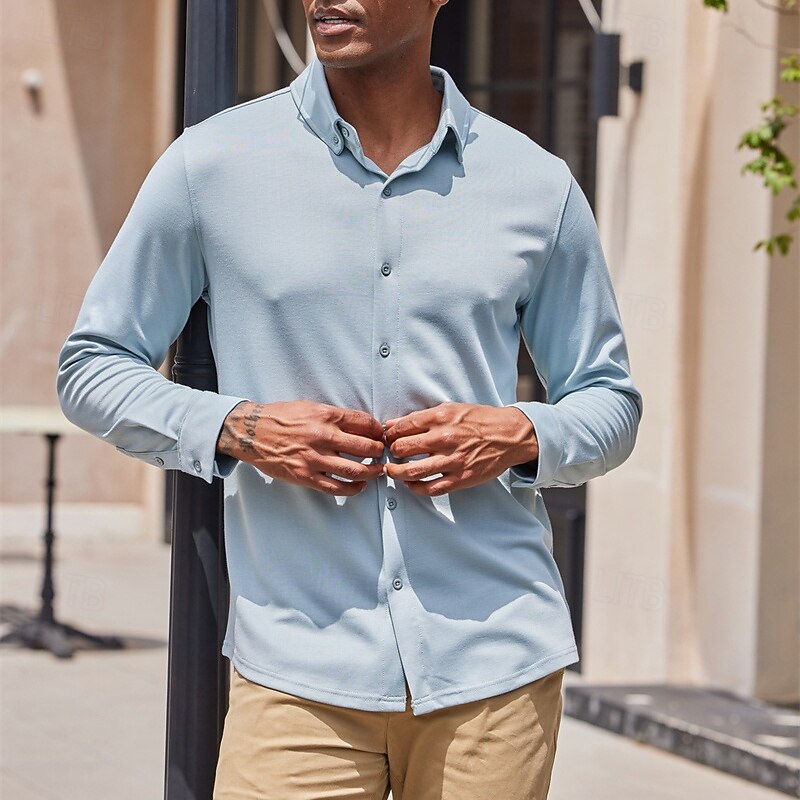 This Men's Shirt Dress Shirt Button Up Shirt Plain Wedding Party Army Green Light Sky Blue Long Sleeve Lapel Spring Fall Clothing Apparel combines elegant design with practical functionality. Every detail has been carefully considered to ensure you get the best possible experience. The magnificent construction means this product will serve you well for years to come.